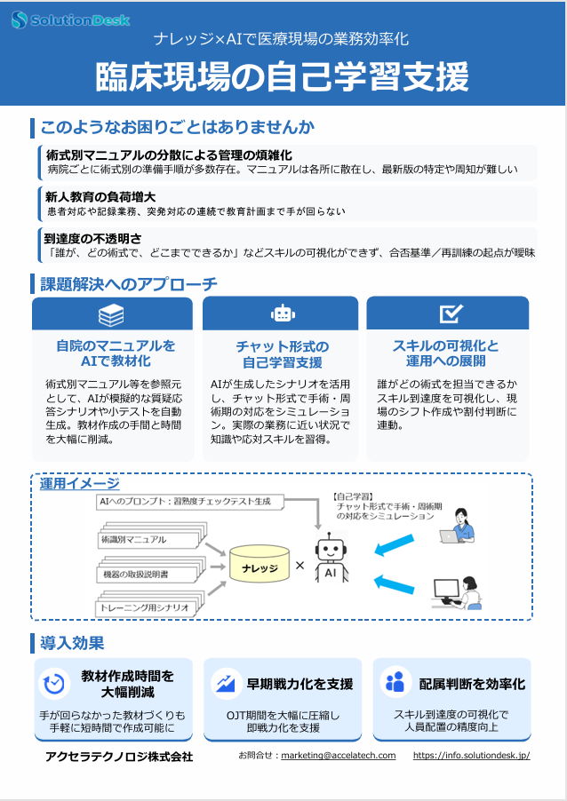生成AIを搭載したナレッジマネジメントシステム「SolutionDesk」を実際に体験いただきます。